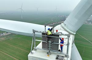 (260206) — JIUJIANG, 6 febrero, 2026 (Xinhua) — Imagen tomada con un dron el 29 de enero de 2026 de trabajadores realizando mantenimiento e inspección en turbinas eólicas, en la isla de Mianchuan de la ciudad de Jiujiang, en la provincia de Jiangxi, en el este de China. La isla de Mianchuan, ubicada en la sección de Jiangxi del río Yangtse y rodeada de agua, cubre un área de 104 kilómetros cuadrados. En 2021, se planificó y construyó un proyecto local de energía eólica, integrando recursos eólicos, solares, de almacenamiento de energía, agrícolas y turísticos para crear un modelo verde de una «isla de carbono cero» en la cuenca del río Yangtse. En mayo de 2025, con la conexión a la red de la última turbina eólica, la «isla de carbono cero» a gran escala alimentada por energía renovable en la cuenca del río Yangtse comenzó a operar oficialmente.(Xinhua/Wan Xiang) (jg) (da) (vf)