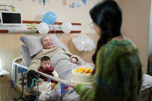 (260424) -- NANCHANG, 24 abril, 2026 (Xinhua) -- Imagen del 28 de marzo de 2026 del señor Deng celebrando el cumpleaños de su hijo con su familia, en Nanchang, en la provincia de Jiangxi, en el este de China. Recientemente, un equipo de neurocirugía del Primer Hospital Afiliado de la Universidad de Nanchang realizó con éxito una operación clínica del sistema de interfaz cerebro-computadora (BCI, por sus siglas en inglés) totalmente implantable, totalmente inalámbrico y totalmente funcional. Al integrar una latencia de extremo a extremo inferior a 50 milisegundos con estimulación eléctrica funcional controlada por BCI, el sistema permite a un paciente de 29 años con una lesión medular grave, un antiguo profesor de arte, recuperar el control autónomo de la mano para comer, escribir y pintar en el plazo de un mes tras la implantación. (Xinhua/Zhou Mi) (jg) (ra) (vf)