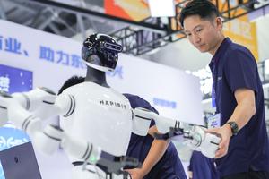 (250827) — CHANGCHUN, 27 agosto, 2025 (Xinhua) — Trabajadores ajustan un robot humanoide en la 15 Exposición China-Noreste Asiático, en Changchun, en la provincia de Jilin, en el noreste de China, el 27 de agosto de 2025. La 15 Exposición China-Noreste Asiático fue inaugurada aquí el miércoles. (Xinhua/Xu Chang) (jg) (da) (vf)