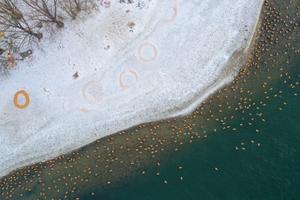 (260130) — JILIN, 30 enero, 2026 (Xinhua) — Vista aérea tomada con un dron el 28 de enero de 2026 de un gran número de aves habitando la isla de Changbai, en la ciudad de Jilin, en la provincia de Jilin, en el noreste de China. En años recientes, las autoridades locales de la ciudad han restaurado continuamente la ecología del humedal de la isla de Changbai. A través de una serie de medidas eficaces, como el envío de personal especializado a la protección de las aves, la estandarización de las actividades de observación, el estricto control de los vertidos de aguas residuales y la repoblación científica, la isla de Changbai, ha recuperado su belleza ecológica natural. (Xinhua/Zhang Nan) (rtg) (ra) (vf)