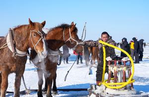 (260108) -- SONGYUAN, 8 enero, 2026 (Xinhua) -- Imagen del 7 de enero de 2026 de un pescador atando caballos a un cabrestante para tirar de la red, en Songyuan, en la provincia de Jilin, en el noreste de China. El 24 Festival de Turismo Cultural de Pesca y Caza en Hielo y Nieve del Lago Chagan fue inaugurado aquí el jueves. Las técnicas de pesca tradicionales se realizan en el lago, como el cincelado manual del hielo, los cabrestantes tirados por caballos y el arrastre de redes bajo el lago cubierto de hielo. La pesca en el hielo del lago Chagan, un patrimonio cultural inmaterial nacional, se ha convertido en un símbolo significativo de la cultura del hielo y nieve en el noreste de China. (Xinhua/Yan Linyun) (jg) (ra)