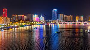 CHINA-JILIN-RIO SONGHUAJIANG-PUENTE LINJIANGMEN-VISTA NOCTURNA