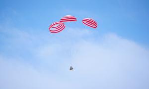 (250617) -- JIUQUAN, 17 junio, 2025 (Xinhua) -- Imagen del 17 de junio de 2025 de una escena durante una prueba de vuelo de escape a altitud cero en la nave espacial tripulada de nueva generación Mengzhou de China, en el noroeste de China. China realizó con éxito el martes una prueba, dando un importante paso adelante en su programa de exploración lunar tripulada. (Xinhua/Wang Heng) (oa) (ra) (vf)