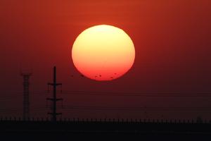 (260402) -- DONGGANG, 2 abril, 2026 (Xinhua) -- Imagen del 2 de abril de 2026 del amanecer en un hábitat para aves migratorias en el estuario del río Yalu, en Dandong, en la provincia de Liaoning, en el noreste de China. (Xinhua/Li Gang) (da) (vf)