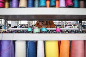 (250725) -- HULUDAO, 25 julio, 2025 (Xinhua) -- Imagen del 16 de julio de 2025 de una trabajadora seleccionando materias primas en una empresa de trajes de baño, en la ciudad de Xingcheng, en la provincia de Liaoning, en el noreste de China. Xingcheng, una pequeña ciudad costera con una población de menos de 500.000 habitantes, se ha consolidado silenciosamente como un gigante global en la industria de los trajes de baño. Produce la asombrosa cantidad de 170 millones de piezas de trajes de baño cada año; uno de cada cuatro artículos de trajes de baño vendidos en todo el mundo se fabrica aquí. (Xinhua/Pan Yulong) (jg) (da) (ce)