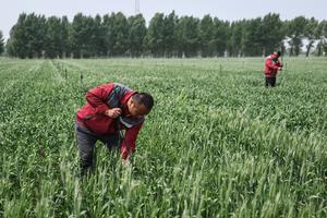 (250601) — FUXIN, 1 junio, 2025 (Xinhua) — Imagen del 29 de mayo de 2025 de aldeanos manteniendo el dispositivo de riego en un campo de siembra de rotación de trigo y soja, en el municipio de Xinglongshan del distrito de Zhangwu, en Fuxin, en la provincia de Liaoning, en el noreste de China. Localizado en el extremo sur del arenal de Horqin, el distrito de Zhangwu solía estar plagado de tormentas de arena y polvo. Desde hace más de 70 años, sus habitantes no han cesado en su empeño de transformar el entorno ecológico de esta zona para ganar la dura batalla contra la desertificación. (Xinhua/Pan Yulong) (oa) (rtg) (da)