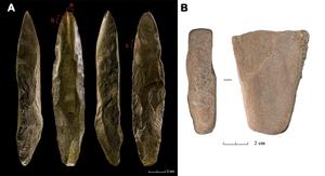 (260429) -- BEIJING, 29 abril, 2026 (Xinhua) -- Imagen compuesta de herramientas de piedra pulida desenterradas en el yacimiento paleolítico de Dadong, en la ciudad de Helong, uno de los conjuntos de yacimientos paleolíticos situados en las montañas Changbai, en la provincia de Jilin, en el noreste de China. China anunció el miércoles su lista de los 10 descubrimientos arqueológicos más importantes de 2025, con hallazgos que abarcan desde los bosques de las montañas Changbai en el noreste hasta las estribaciones de las montañas Helan en el noroeste, ofreciendo nuevas perspectivas sobre capítulos clave de los 5.000 años de historia de la civilización china. (Xinhua) (jg) (ah) (ce)