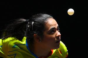 (250911) -- MACAO, 11 septiembre, 2025 (Xinhua) -- Adriana Díaz, de Puerto Rico, sirve la pelota durante el partido de octavos de final de individuales femeninos ante Wang Yidi, de China, en el Campeonato Mundial de Tenis de Mesa (WTT) 2025, en Macao, en el sur de China, el 11 de septiembre de 2025. (Xinhua/Cheong Kam Ka) (rtg) (ra) (vf)