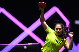 (250911) -- MACAO, 11 septiembre, 2025 (Xinhua) -- Adriana Díaz, de Puerto Rico, compite durante el partido de octavos de final de individuales femeninos ante Wang Yidi, de China, en el Campeonato Mundial de Tenis de Mesa (WTT) 2025, en Macao, en el sur de China, el 11 de septiembre de 2025. (Xinhua/Cheong Kam Ka) (rtg) (ra) (vf)