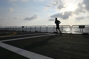 (260311) -- MAR MERIDIONAL DE CHINA, 11 marzo, 2026 (Xinhua) -- Imagen del 8 de marzo de 2026 de un agente de la ley corriendo a bordo del buque Sandu de la Guardia Costera de China (GCCh), en el Mar Meridional de China. El buque Sandu de la GCCh realizó patrullajes en el Mar Meridional de China para salvaguardar la soberanía territorial y los derechos e intereses marítimos de China. (Xinhua/Mao Jun) (jg) (da) (vf)