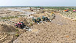 (250818) -- BAYANNUR, 18 agosto, 2025 (Xinhua) -- Vista aérea tomada con un dron el 18 de agosto de 2025 de rescatistas buscando personas desaparecidas, en la bandera de Urad Rear, en la ciudad de Bayannur, en la región autónoma de Mongolia Interior, en el norte de China. La cifra de muertos subió a 10 y dos personas siguen desaparecidas a causa de una inundación repentina que arrasó un campamento al aire libre en la región autónoma de Mongolia Interior, en el norte de China, informaron el domingo las autoridades locales de emergencia. (Xinhua/Ma Jinrui) (rtg) (ah) (vf)