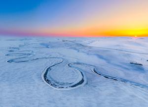 (251203) — HULUN BUIR, 3 diciembre, 2025 (Xinhua) — Vista aérea tomada con un dron el 3 de diciembre de 2025 del paisaje al amanecer en la pradera cubierta de nieve de la bandera de Chenbarhu, en Hulun Buir, en la región autónoma de Mongolia Interior, en el norte de China. (Xinhua/Ma Jinrui) (ah) (ra) (vf)