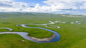 (250820) -- HULUN BUIR, 20 agosto, 2025 (Xinhua) -- Vista aérea tomada con un dron el 19 de agosto de 2025 del paisaje a lo largo del río Mergel Gol, en Hulun Buir, en la región autónoma de Mongolia Interior, en el norte de China. (Xinhua/Ma Jinrui) (jg) (ra) (ce)