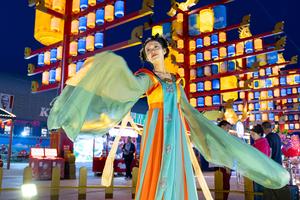 (250905) -- ULANQAB, 5 septiembre, 2025 (Xinhua) -- Imagen del 4 de septiembre de 2025 de una actriz presentando un baile en un bloque temático, en Ulanqab, en la región autónoma de Mongolia Interior, en el norte de China. (Xinhua/Ma Jinrui) (jg) (vf)