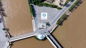 (250529) -- BAYANNUR, 29 mayo, 2025 (Xinhua) -- Vista aérea tomada con un dron el 28 de mayo de 2025 del Proyecto de Control de Agua de Sanshenggong, en el distrito de Dengkou de Bayannur, en la región autónoma de Mongolia Interior, en el norte de China. La Zona de Riego de Hetao, ubicada en Bayannur, en la región autónoma de Mongolia Interior, en el norte de China, ha desviado agua del río Amarillo para riego desde la antigüedad. El proyecto de riego fue incluido en el Patrimonio Mundial de Estructuras de Riego en 2019. (Xinhua/Ma Jinrui) (da) (ra) (vf)