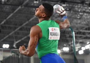 (250322) -- NANJING, 22 marzo, 2025 (Xinhua) -- José Fernando Ferreira, de Brasil, compite durante el lanzamiento de peso de heptatlón masculino en el Campeonato Mundial de Atletismo en Pista Cubierta 2025, en Nanjing, en la provincia de Jiangsu, en el este de China, el 22 de marzo de 2025. (Xinhua/Song Yanhua) (oa) (da)