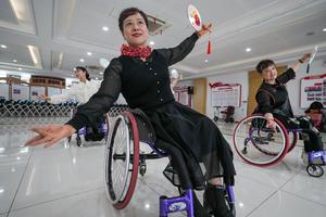 CHINA-NANJING-EQUIPO DE DANZA EN SILLA DE RUEDAS