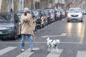 (260120) -- BEIJING, 20 enero, 2026 (Xinhua) -- Una mujer pasea a su perro en medio de la nieve, en el distrito de Xuhui de Shanghai, en el este de China, el 20 de enero de 2026. En relación con las nevadas generalizadas y los descensos de temperatura en varias regiones de China, se han tomado medidas para responder activamente a estas condiciones meteorológicas. (Xinhua/Wang Xiang) (oa) (ah) (vf)