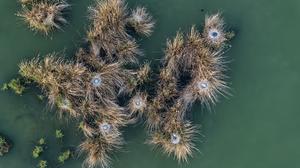 (260419) -- YINCHUAN, 19 abril, 2026 (Xinhua) -- Vista aérea tomada con un dron el 17 de abril de 2026 de nidos de garzas en el punto escénico de Shahu, en Shizuishan, en la región autónoma hui de Ningxia, en el noroeste de China. (Xinhua/Wang Peng) (oa) (ah)