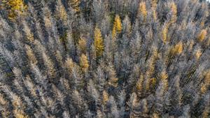 (251028) -- GUYUAN, 28 octubre, 2025 (Xinhua) -- Vista aérea tomada con un dron el 26 de octubre de 2025 del paisaje de otoño en la montaña Liupanshan, en la ciudad de Guyuan, en la región autónoma de la etnia hui de Ningxia, en el noroeste de China. (Xinhua/Wang Peng) (jg) (ra) (ce)