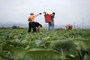 (250718) -- GUYUAN, 18 julio, 2025 (Xinhua) -- Trabajadoras cosechan coles en una base de verduras de temporada fría, en Guyuan, en la región autónoma hui de Ningxia, en el noroeste de China, el 18 de julio de 2025. Aprovechando sus ventajas del terreno de gran altitud y del clima frío, Guyuan ha desarrollado vigorosamente su industria de verduras de temporada fría en los últimos años. (Xinhua/Wang Peng) (jg) (da) (vf)