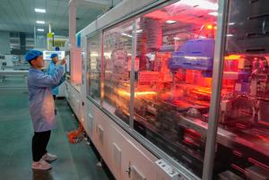 (250221) -- TONGXIN, 21 febrero, 2025 (Xinhua) -- Imagen del 20 de febrero de 2025 de trabajadores procesando productos fotovoltaicos en un parque industrial, en el distrito de Tongxin de Wuzhong, en la región autónoma hui de Ningxia, en el noroeste de China. El distrito de Tongxin está cultivando un clúster de energía renovable mediante el desarrollo de un parque industrial, ampliando las cadenas de fabricación ecológica para impulsar el crecimiento sostenible en las regiones áridas. (Xinhua/Yang Zhisen) (oa) (ra) (vf)