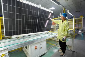 (250221) -- TONGXIN, 21 febrero, 2025 (Xinhua) -- Imagen del 20 de febrero de 2025 de un trabajador revisando un panel fotovoltaico en un parque industrial, en el distrito de Tongxin de Wuzhong, en la región autónoma hui de Ningxia, en el noroeste de China. El distrito de Tongxin está cultivando un clúster de energía renovable mediante el desarrollo de un parque industrial, ampliando las cadenas de fabricación ecológica para impulsar el crecimiento sostenible en las regiones áridas. (Xinhua/Yang Zhisen) (oa) (ra) (vf)