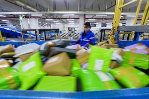 (251112) — YINCHUAN, 12 noviembre, 2025 (Xinhua) — Imagen del 11 de noviembre de 2025 de una trabajadora clasificando paquetes en un centro de gestión de ZTO Express, en el distrito de Helan, en Yinchuan, en la región autónoma de la etnia hui de Ningxia, en el noroeste de China. Las compañías de logística en Yinchuan trabajaron a plena capacidad el martes, cuando el festival de compras en línea del «Doble Once» alcanzó su punto máximo. (Xinhua/Yang Zhisen) (ah) (ra) (ce)