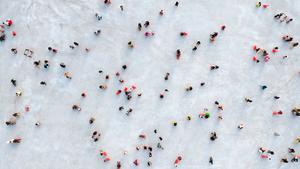 (260118) -- YINCHUAN, 18 enero, 2026 (Xinhua) -- Vista aérea tomada con un dron el 17 de enero de 2026 de personas divirtiéndose en una pista de hielo en un parque, en Yinchuan, en la región autónoma hui de Ningxia, en el noroeste de China. (Xinhua/Wang Peng) (oa) (da)