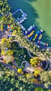 (251023) -- YINCHUAN, 23 octubre, 2025 (Xinhua) -- Vista aérea tomada con un dron el 13 de octubre de 2025 del paisaje otoñal del parque Haibao, en Yinchuan, en la región autónoma de la etnia hui de Ningxia, en el noroeste de China. (Xinhua/Li Jing) (jg) (ah) (ce)