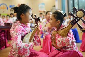 (250816) -- BEIJING, 16 agosto, 2025 (Xinhua) -- Niñas asisten a una reunión con temática musical, en el distrito de Chengyang de la ciudad de Qingdao, en la provincia de Shandong, en el este de China, el 16 de agosto de 2025. (Xinhua/Wang Haibin) (jg) (rtg) (ce)