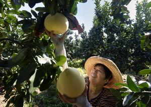 (250922) -- BEIJING, 22 septiembre, 2025 (Xinhua) -- Un agricultor cosecha toronjas en un huerto de toronjas, en el distrito de Pinghe, en la provincia de Fujian, al sureste de China, el 22 de septiembre de 2025. (Xinhua/Li Runnan) (oa) (ah) (vf)