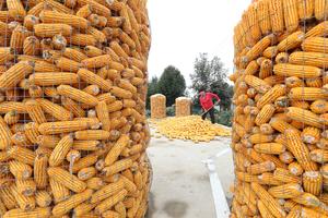 (251011) -- BEIJING, 11 octubre, 2025 (Xinhua) -- Una agricultora acomoda maíz recién cosechado, en la aldea de Lugezhuang, en la ciudad de Tangshan, en la provincia de Hebei, en el norte de China, el 11 de octubre de 2025. (Xinhua/Zhu Dayong) (oa) (da)