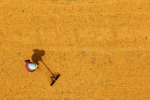 (250911) -- BEIJING, 11 septiembre, 2025 (Xinhua) -- Vista aérea tomada con un dron el 9 de septiembre de 2025 de un aldeano aireando maíces, en el poblado de Baotai, en el distrito de Pingyi, en la ciudad de Linyi, en la provincia de Shandong, en el este de China. (Xinhua/Wu Jiquan) (da) (ra) (ce)