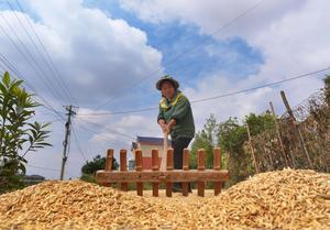 (251023) -- BEIJING, 23 octubre, 2025 (Xinhua) -- Imagen tomada con un dron del 23 de octubre de 2025 de un agricultor secando arroz, en Hengyang, en la provincia de Hunan, en el centro de China. El jueves se conmemora el Descenso de las Heladas. Como último término solar del otoño, el Descenso de las Heladas anuncia la llegada del invierno. (Xinhua/Cao Zhengping) (da) (ra) (ce)