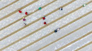 (251023) -- BEIJING, 23 octubre, 2025 (Xinhua) -- Vista aérea tomada con un dron del 23 de octubre de 2025 de agricultores plantando ajo, en Shangqiu, en la provincia de Henan, en el centro de China. El jueves se conmemora el Descenso de las Heladas. Como último término solar del otoño, el Descenso de las Heladas anuncia la llegada del invierno. (Xinhua/Xu Zeyuan) (da) (ra) (ce)