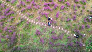(251019) -- BEIJING, 19 octubre, 2025 (Xinhua) -- Vista aérea tomada con un dron el 18 de octubre de 2025 de personas disfrutando de una excursión en un parque de humedales, en Luoyang, en la provincia de Henan, en el centro de China. Personas están saliendo al aire libre para disfrutar de los agradables días de otoño en toda China. (Xinhua/Huang Zhengwei) (oa) (ah)
