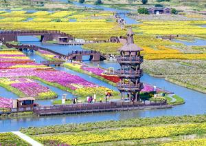 (251023) -- BEIJING, 23 octubre, 2025 (Xinhua) -- Vista aérea tomada con un dron del 23 de octubre de 2025 de personas visitando un punto escénico, en la ciudad de Xinghua, en la provincia de Jiangsu, en el este de China. (Xinhua/Zhou Shegen) (da) (ra) (ce)