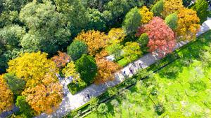 (251025) -- BEIJING, 25 octubre, 2025 (Xinhua) -- Vista aérea tomada con un dron el 24 de octubre de 2025 de turistas visitando el mausoleo imperial de Xiaoling, el sitio de entierro del emperador fundador de la dinastía Ming (1368-1644), Zhu Yuanzhang, en Nanjing, en la provincia de Jiangsu, en el este de China. (Xinhua/Yang Suping) (oa) (da)