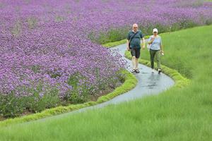 (250609) -- BEIJING, 9 junio, 2025 (Xinhua) -- Imagen del 8 de junio de 2025 de turistas disfrutando de flores en un parque, en Jiaxing, en la provincia de Zhejiang, en el este de China. (Xinhua/Jin Peng) (oa) (rtg) (vf)