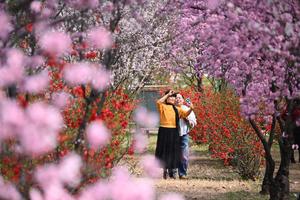 (260318) -- BEIJING, 18 marzo, 2026 (Xinhua) -- Imagen del 16 de marzo de 2026 de personas tomándose fotografías entre las flores, en la ciudad de Kaifeng, en la provincia de Henan, en el centro de China. (Xinhua/Li Junsheng) (ah) (ra) (ce)