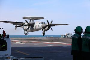 (250922) -- BEIJING, 22 septiembre, 2025 (Xinhua) -- Imagen de archivo de un avión embarcado KongJing-600 realizando un aterrizaje con detención, en el portaaviones chino Fujian. La Armada china anunció el lunes que los aviones embarcados J-15T, J-35 y KongJing-600 han completado con éxito sus pruebas iniciales de despegues asistidos por catapulta electromagnética y aterrizajes en el portaviones Fujian. (Xinhua/Li Tang) (rtg) (ah) (vf)