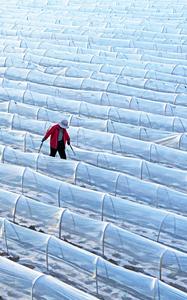 (260407) -- BEIJING, 7 abril, 2026 (Xinhua) -- Imagen del 5 de abril de 2026 de un agricultor ventilando invernaderos en una base de cultivo de sandías, en la aldea de Zhongcao, en Mengzhou, en la provincia de Henan, en el centro de China. (Xinhua/Bai Shuiping) (oa) (ah) (ce)