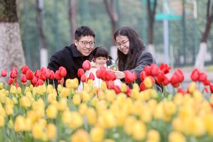(250315) -- BEIJING, 15 marzo, 2025 (Xinhua) -- Turistas posan para una fotografía cerca de un campo de tulipanes florecientes en un parque, en la ciudad de Huzhou, en la provincia de Zhejiang, en el este de China, el 15 de marzo de 2025. A medida que se acerca la temporada de primavera, las flores están en plena floración en todo el país. (Xinhua/Xie Shangguo) (jg) (da)
