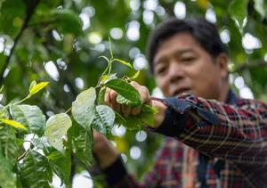 (260413) -- BEIJING, 13 abril, 2026 (Xinhua) -- Imagen del 11 de abril de 2026 de un agricultor de té recolectando brotes de té de un antiguo árbol de té, en la aldea de Chashu del distrito de Nanchuan, en la municipalidad de Chongqing, en el suroeste de China. Los agricultores y las empresas de té están ocupados cosechando y procesando las hojas de té de primavera para satisfacer la demanda de los consumidores en estos días. (Xinhua/Luo Chuan) (oa) (ah) (vf)