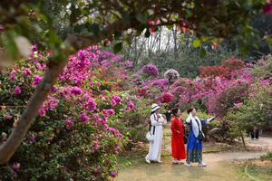(250316) -- BEIJING, 16 marzo, 2025 (Xinhua) -- Turistas se toman fotografías en el jardín de plantas y flores tropicales, en Xishuangbanna, en la provincia de Yunnan, en el suroeste de China, el 16 de marzo de 2025. A medida que se acerca la temporada de primavera, las flores están en plena floración en todo el país. (Xinhua/Li Yunsheng) (rtg) (ah)