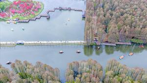 (260408) -- BEIJING, 8 abril, 2026 (Xinhua) -- Vista aérea tomada con un dron el 6 de abril de 2026 de personas tomando botes en el parque nacional de humedales de Lixiahe, en Xinghua, en la provincia de Jiangsu, en el este de China. (Xinhua/Zhou Shegen) (jg) (da) (ce)