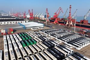 (260127) -- BEIJING, 27 enero, 2026 (Xinhua) -- Imagen tomada con un dron el 27 de enero de 2026 de vehículos que serán cargados en buques en un muelle, en Lianyungang, en la provincia de Jiangsu, en el este de China. Las ganancias de las principales empresas industriales de China volvieron a crecer en 2025, rompiendo así una racha de tres años de caídas, y sectores emergentes como la fabricación de equipos y de alta tecnología actuaron como los principales motores de crecimiento. Los beneficios de dichas empresas aumentaron un 0,6 por ciento interanual hasta acercarse a 7,4 billones de yuanes (alrededor de 1,06 billones de dólares) el año pasado, según datos oficiales publicados el martes por el Buró Nacional de Estadísticas. Las principales empresas industriales son aquellas con ingresos anuales de al menos 20 millones de yuanes por concepto de su negocio principal. (Xinhua/Wang Chun) (jg) (ra)