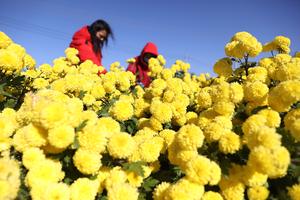 (251119) -- BEIJING, 19 noviembre, 2025 (Xinhua) -- Imagen del 18 de noviembre de 2025 de trabajadoras recolectando flores de crisantemo, en el distrito de Wenxian de Jiaozuo, en la provincia de Henan, en el centro de China. (Xinhua/Xu Hongxing) (jg) (da) (ce)