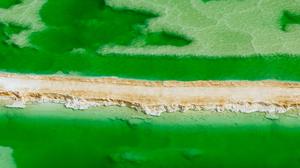 (250421) -- MANGYA, 21 abril, 2025 (Xinhua) -- Vista aérea tomada con un dron el 19 de abril de 2025 del Lago de Jade, en Mangya, en la prefectura autónoma mongola y tibetana de Haixi, en la provincia de Qinghai, en el noroeste de China. Debido a la diferencia en su profundidad y a la concentración de minerales en el agua, el Lago de Jade adquiere diversas tonalidades, lo que lo convierte en un popular punto escénico. (Xinhua/Wang Bo) (oa) (ah) (vf)
